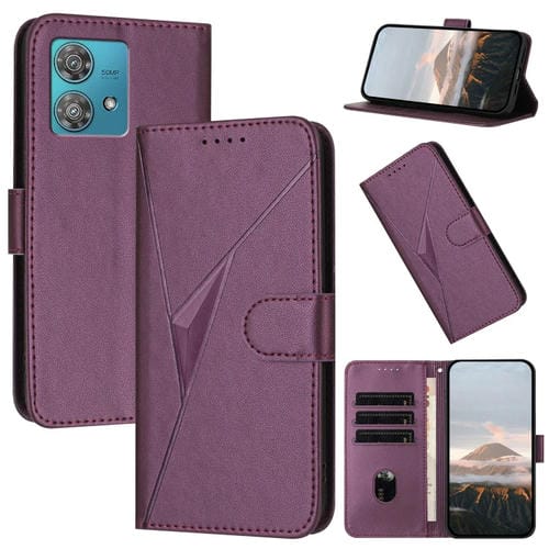 Funda de Cuero con Cierre de Hebilla y Diseño Triangular para Motorola Edge 40 Neo 5G (Morado Oscuro)