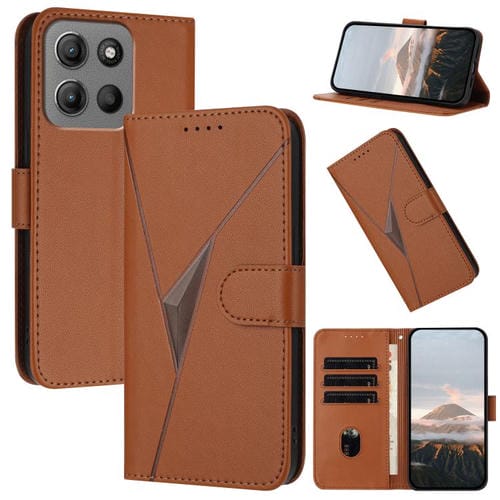 Funda de Cuero Motorola Moto G15 con Cierre de Hebilla y Diseño Triangular (Marrón)