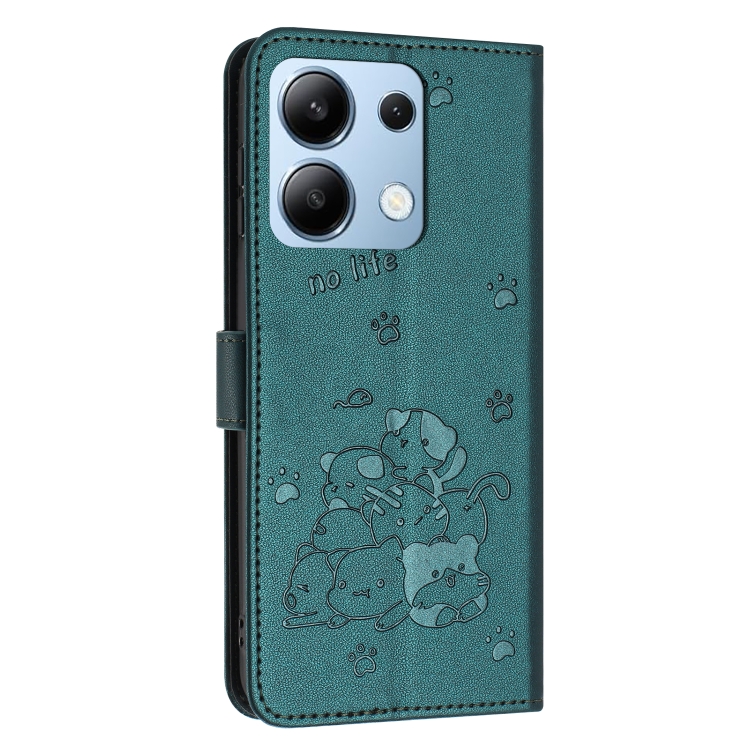 Funda de Cuero con Estampado de Gatito y Cordón para Redmi Note 13 4G (Verde Oscuro)
