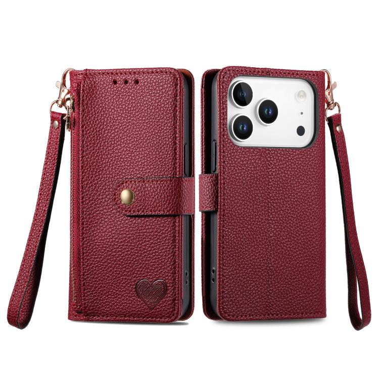 Funda de cuero con cordón y cremallera Love para iPhone 17 Pro Max (roja)