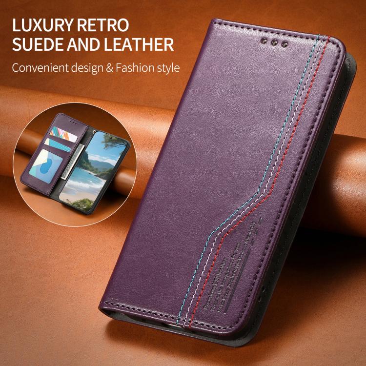 Funda de cuero con correa elástica y ventosa magnética para Samsung Galaxy A26 5G (morado)