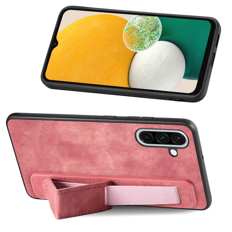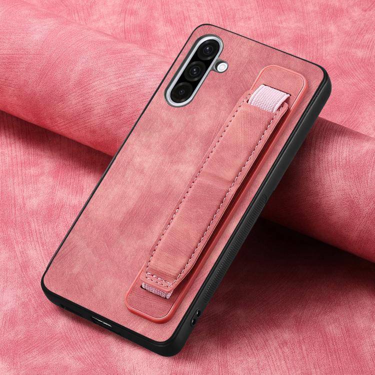 Funda de Cuero con Correa para la Muñeca Samsung Galaxy A56 5G Estilo Retro (Rosa)