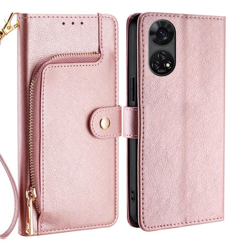 Funda de Cuero con Cremallera para Teléfono ZTE Anshin (Oro Rosa)