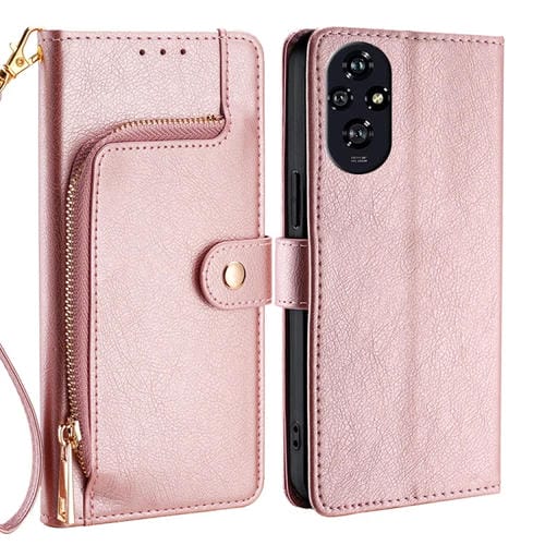 Funda de Cuero con Cremallera para Teléfono Honor 200 5G (Oro Rosa)