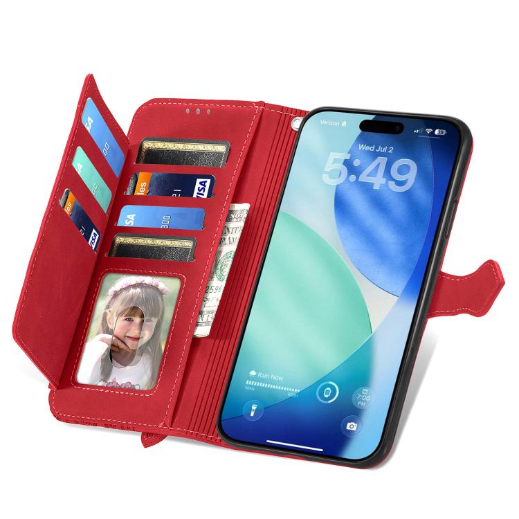 Funda de cuero con cremallera y diseño floral en relieve para iPhone 17 Pro (roja)