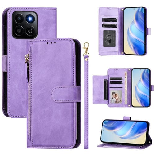 Funda de Cuero con Cremallera y Ranuras para Múltiples Tarjetas para Honor 200 (Morado)