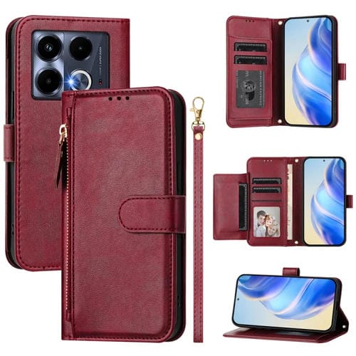 Funda de Cuero con Cremallera y Ranuras para Tarjetas para Infinix Note 40 4G (Rojo Oscuro)