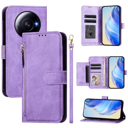 Funda de Cuero con Cremallera y Ranuras para Múltiples Tarjetas para Xiaomi 12S Ultra (Morado)