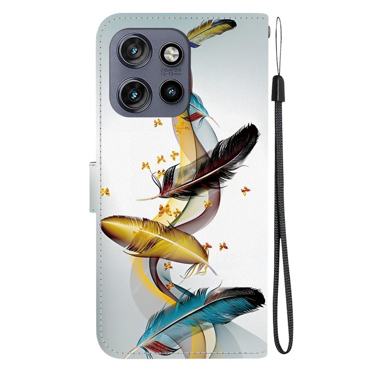 Funda de Cuero Motorola Edge 50 Neo 5G con Dibujo y Textura Cristal (Plumas de Mariposa Doradas)