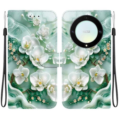 Funda de Cuero para Honor X9A con Dibujo de Colores y Textura de Cristal (Flores de Jade)