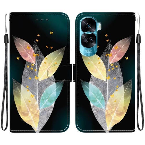 Funda de Cuero para Honor 90 Lite con Dibujo de Colores y Textura de Cristal (Hojas de Colores)