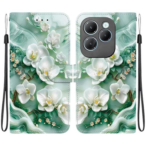 Funda de Cuero con Dibujo y Textura de Cristal para Infinix Hot 40/40 Pro (Flores de Jade)