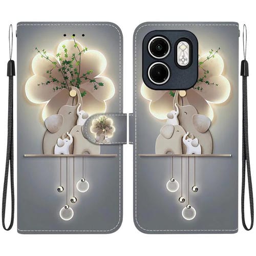Funda de Cuero para Infinix Hot 50I Smart 9 con Dibujo de Colores y Textura de Cristal (Elefantes)