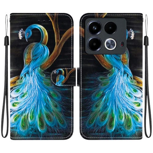 Funda de Cuero con Dibujo y Textura de Cristal para Infinix Note 40 4G (Pavo Real)