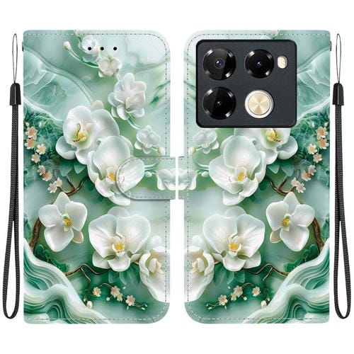 Funda de Cuero con Dibujo y Textura de Cristal para Infinix Note 40 Pro 4G/5G/Pro+ (Flores de Jade)