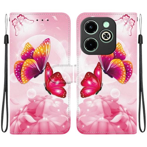 Funda de Cuero con Dibujo y Textura de Cristal para Infinix Smart 8/HD/Hot 40I (Mariposas Rosas)