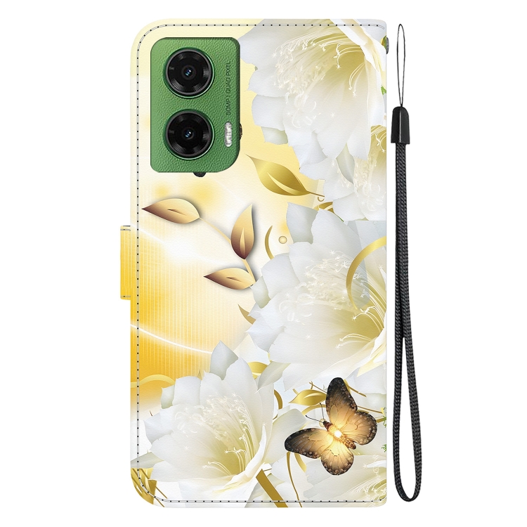 Funda de Cuero para Motorola Moto G35 con Dibujo de Colores y Textura de Cristal (Mariposa Dorada Epiphyllum)