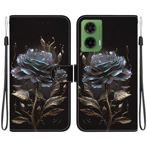 Funda de Cuero para Motorola Moto G35 con Dibujo de Colores y Textura de Cristal (Rosa Negra)