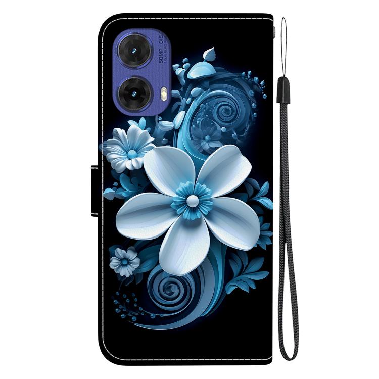 Funda de Cuero con Dibujo y Textura de Cristal para Motorola Moto G85 (Orquídea Negra)