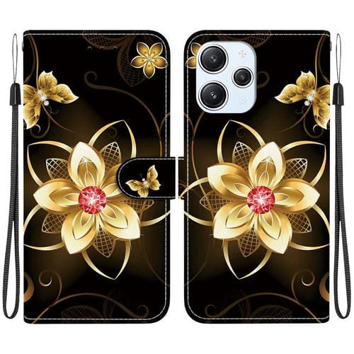 Funda de Cuero con Dibujo de Colores y Textura de Cristal para Redmi 12 4G/5G/Poco M6 Pro (Flor Dorada)