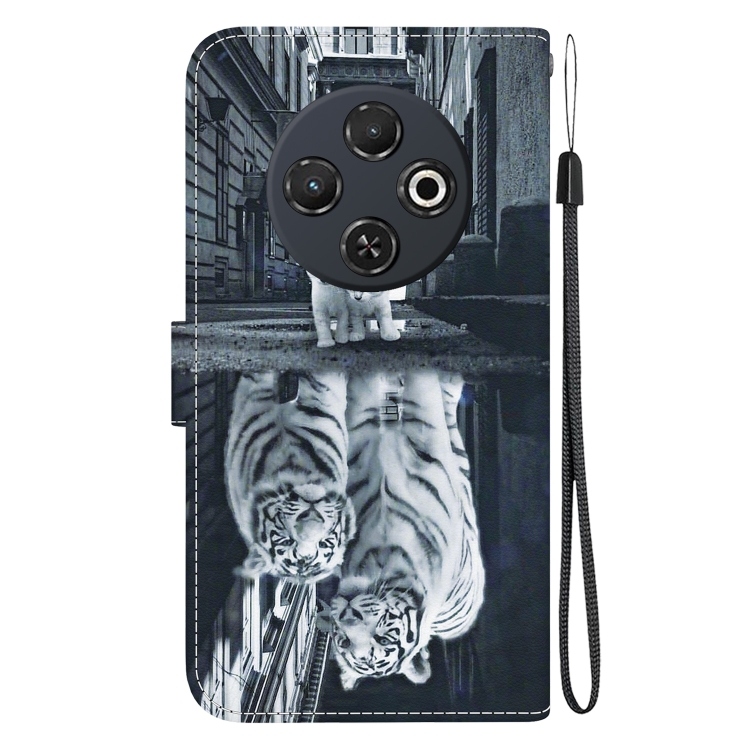 Funda de Cuero para Tecno Spark 30C con Dibujo de Colores y Textura de Cristal (Reflejo de Tigre y Gato)
