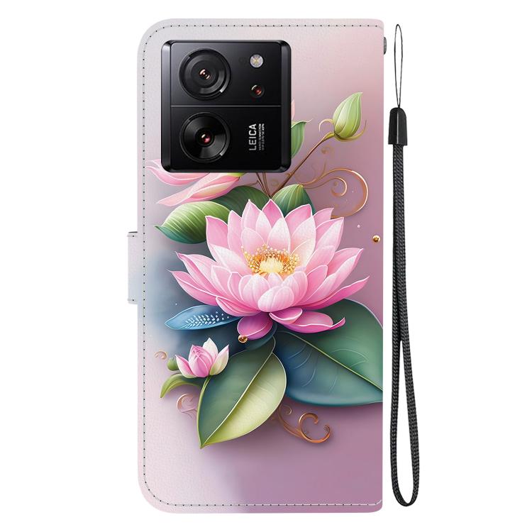 Funda de Cuero con Dibujo de Colores y Textura de Cristal para Xiaomi 13T/13T Pro (Lotus)