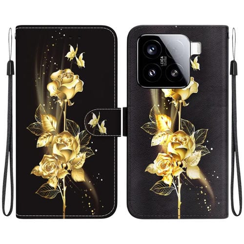 Funda De Cuero Con Dibujo De Colores Y Textura De Cristal Para Xiaomi 15 (Mariposa Dorada Y Rosa)