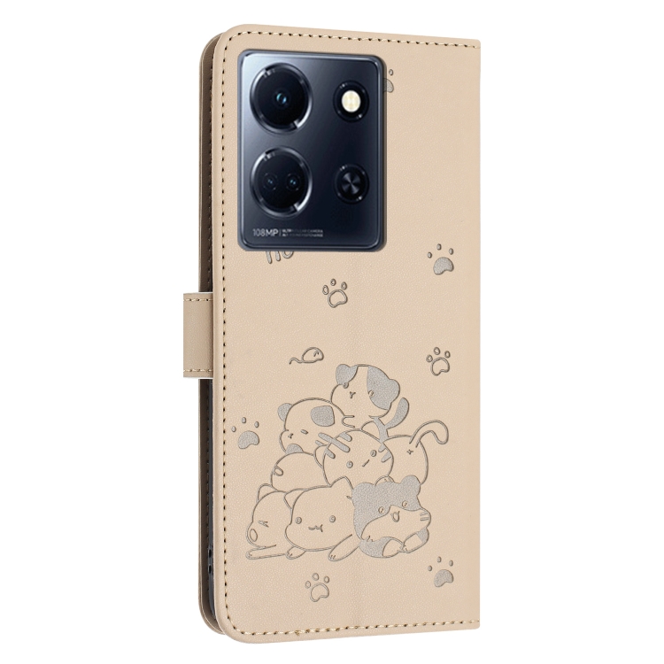 Funda de Cuero Infinix Note 30 Note 30 5G con Diseño de Gatito En Relieve y Cordón (Beige)
