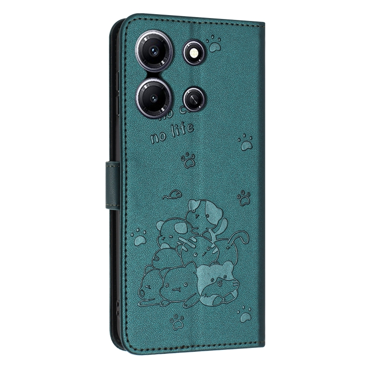 Funda de Cuero Infinix Note 30I con Diseño de Gatito en Relieve y Cordón (Verde Oscuro)