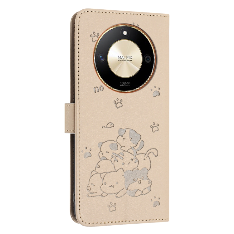 Funda de Piel para Honor X50/X9B con Diseño de Gatito en Relieve y Cordón (Beige)