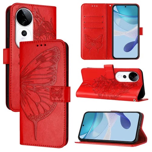 Funda de Cuero con Diseño de Mariposa En Relieve para El Teléfono Vivo S19 Pro (Rojo)