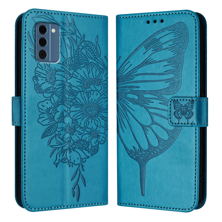 Funda de Cuero para Nokia C300 con Diseño de Mariposa en Relieve (Azul)