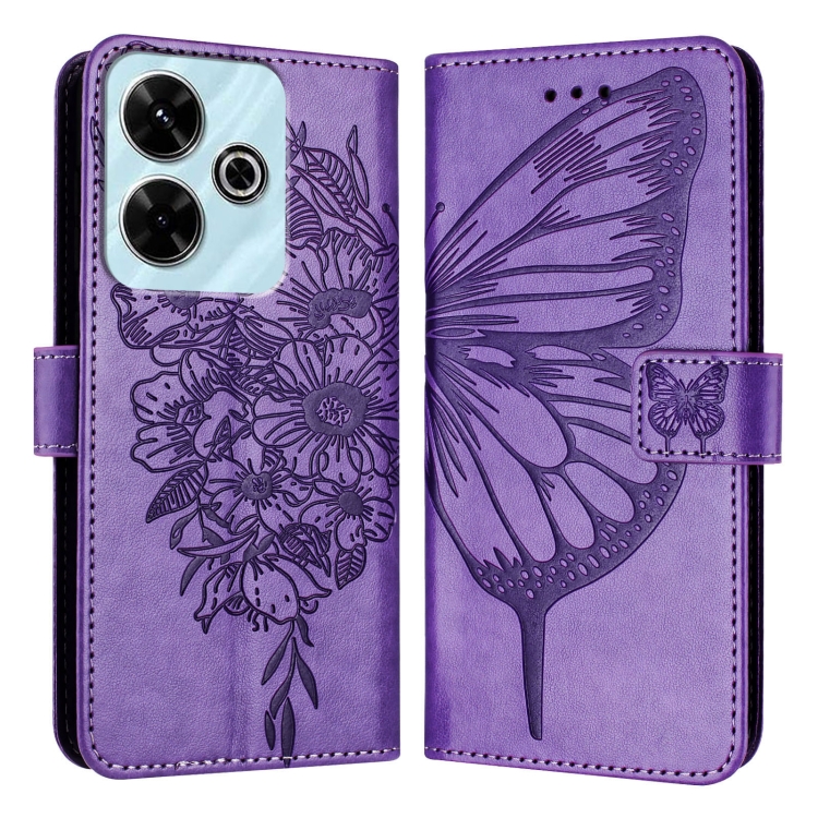 Funda de Cuero con Diseño de Mariposa En Relieve para Redmi 13 4G (Morado Claro)