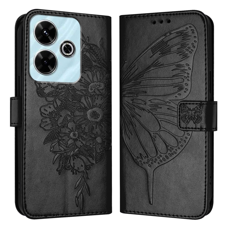Funda de Cuero con Diseño de Mariposa En Relieve para Redmi 13 4G (Negra)