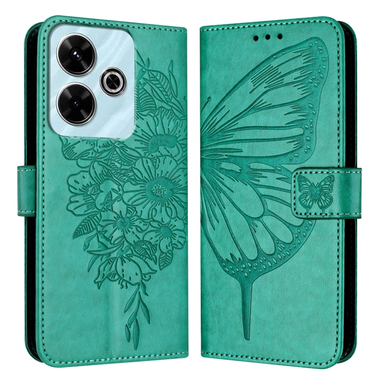 Funda de Cuero con Diseño de Mariposa En Relieve para Redmi 13 4G (Verde)