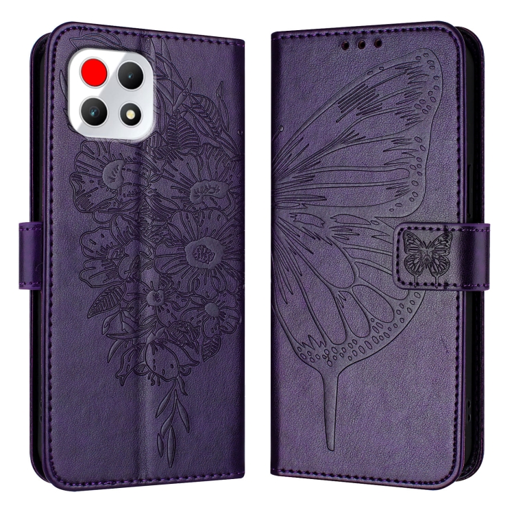 Funda de Cuero para T-Mobile Revvl 7 5G con Diseño de Mariposa En Relieve (Morado Oscuro)