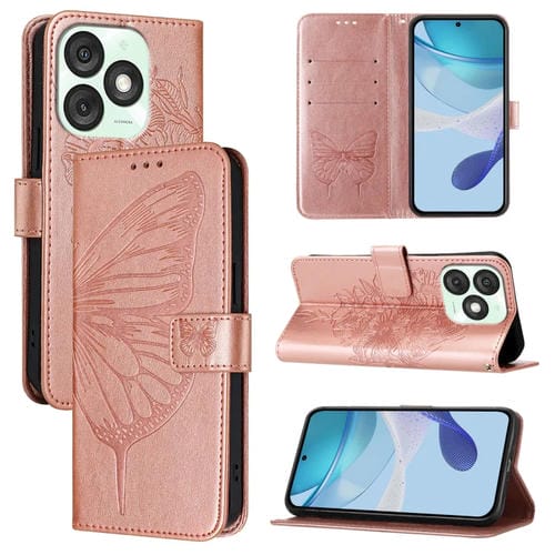 Funda de Cuero Itel A50 con Diseño de Mariposa en Relieve (Oro Rosa)
