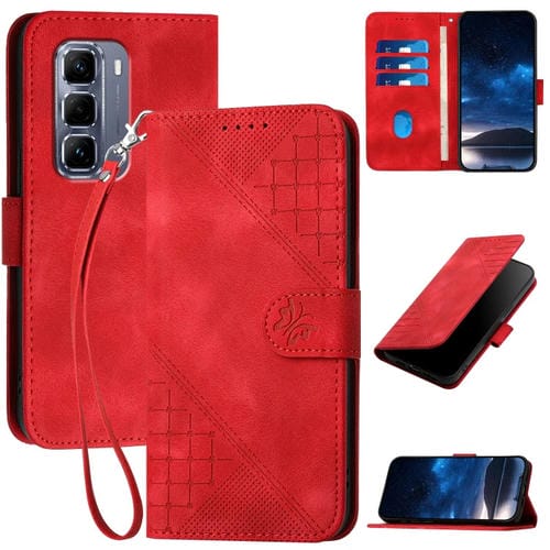 Funda de Cuero para Infinix Hot 50 Pro+ 4G con Diseño Mariposa en Relieve y Cordón (Rojo)