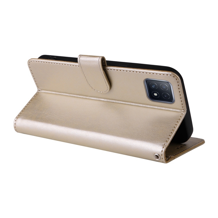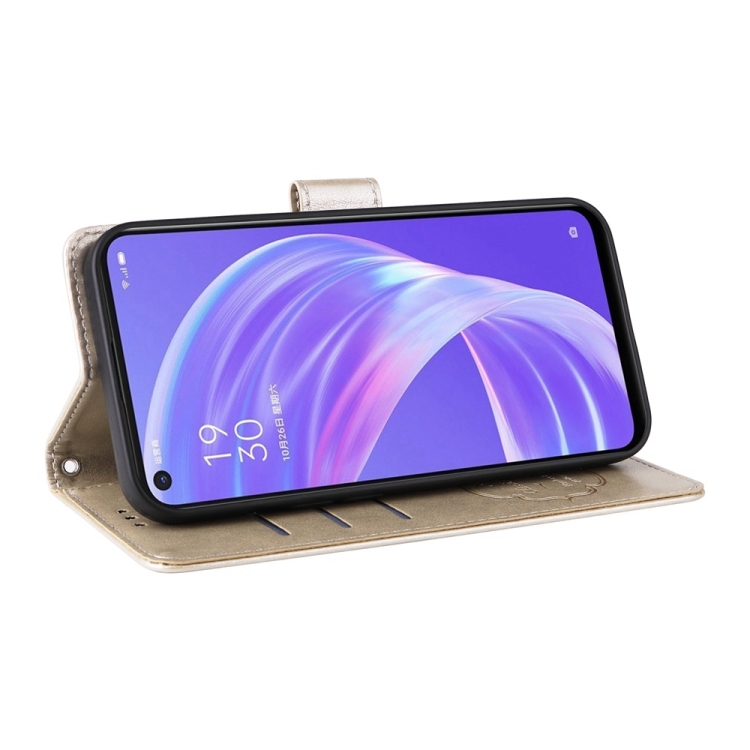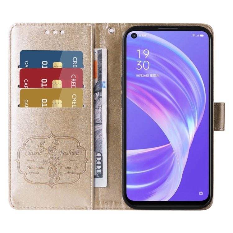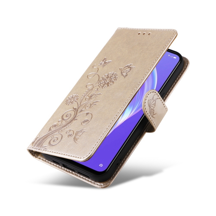 Funda de Cuero con Diseño de Mariposas y Flores En Relieve para Oppo A92S/A53 5G/A72 5G/A73 5G (Dorada)