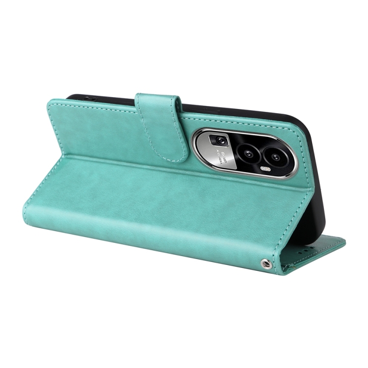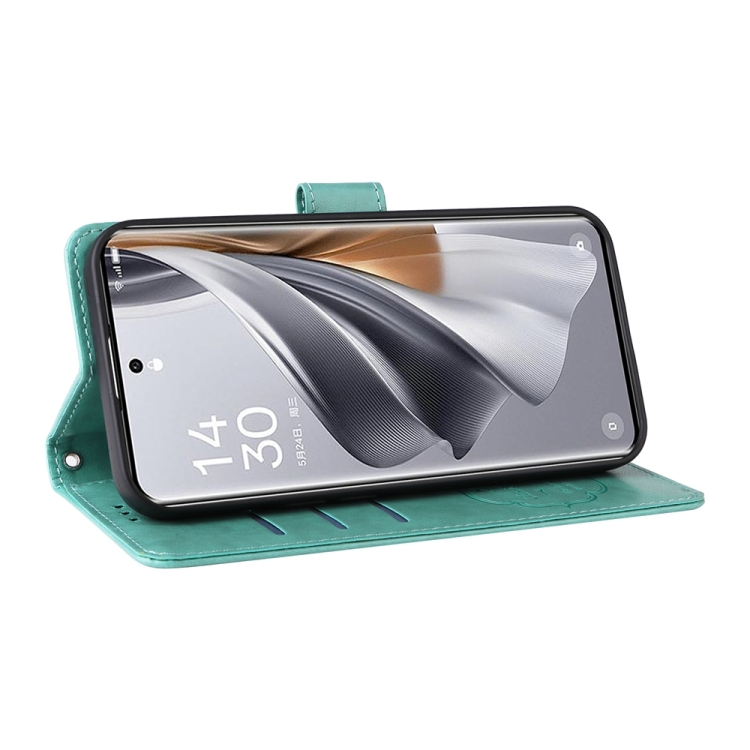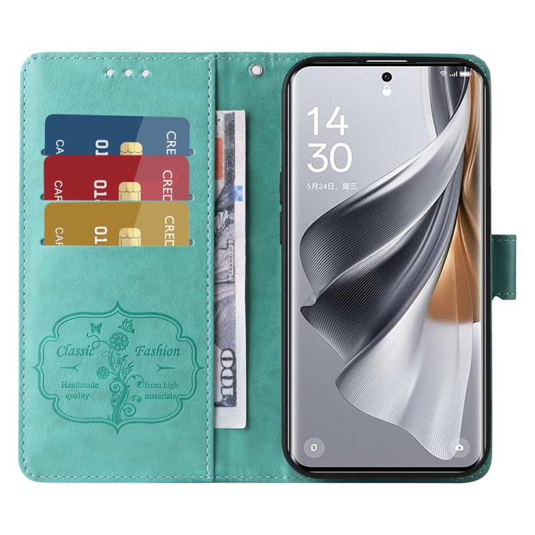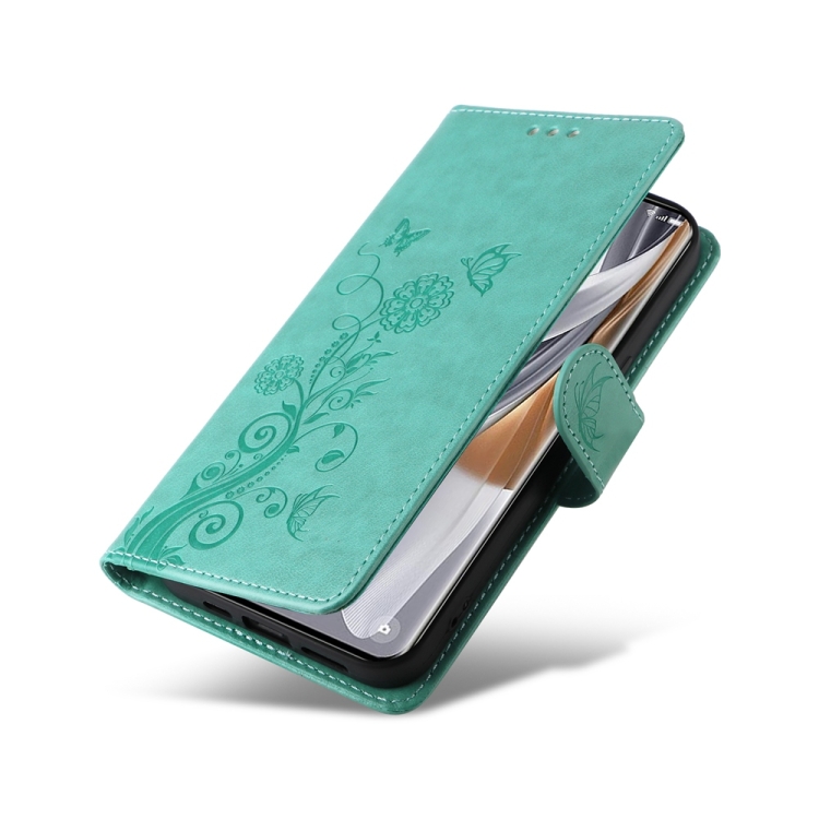Funda de Cuero con Diseño de Mariposas y Flores En Relieve para Oppo Reno10/Reno10 Pro (Verde)