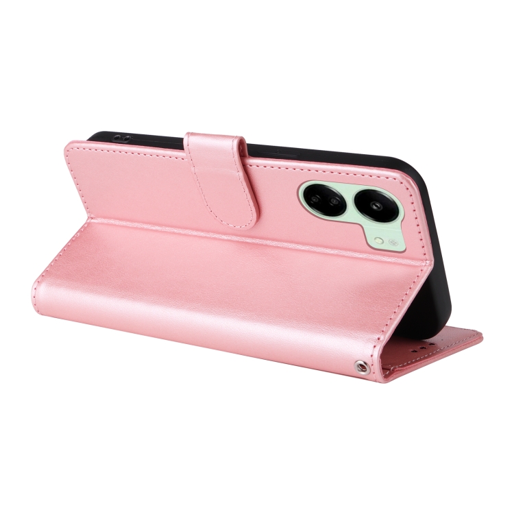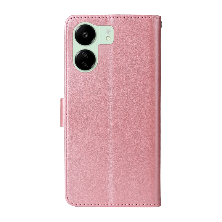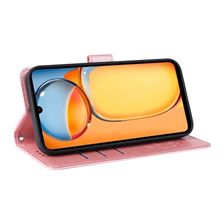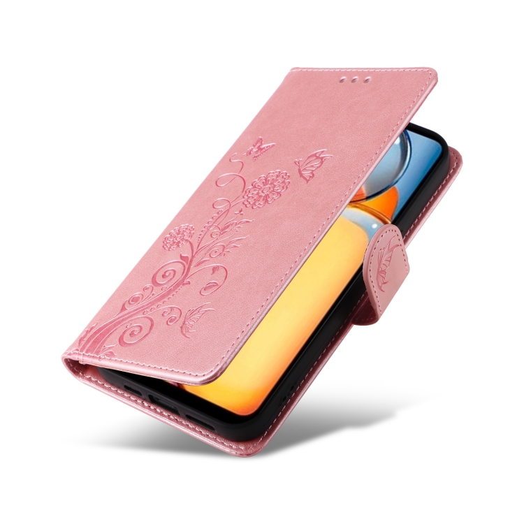 Funda de Cuero con Diseño de Mariposas y Flores En Relieve para Redmi 13C 5G/4G/13R (Oro Rosa)