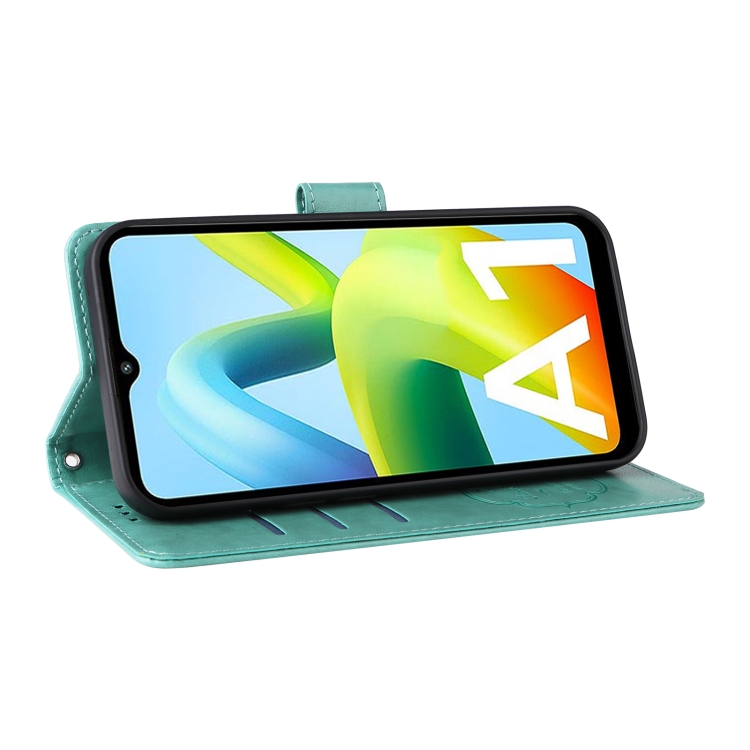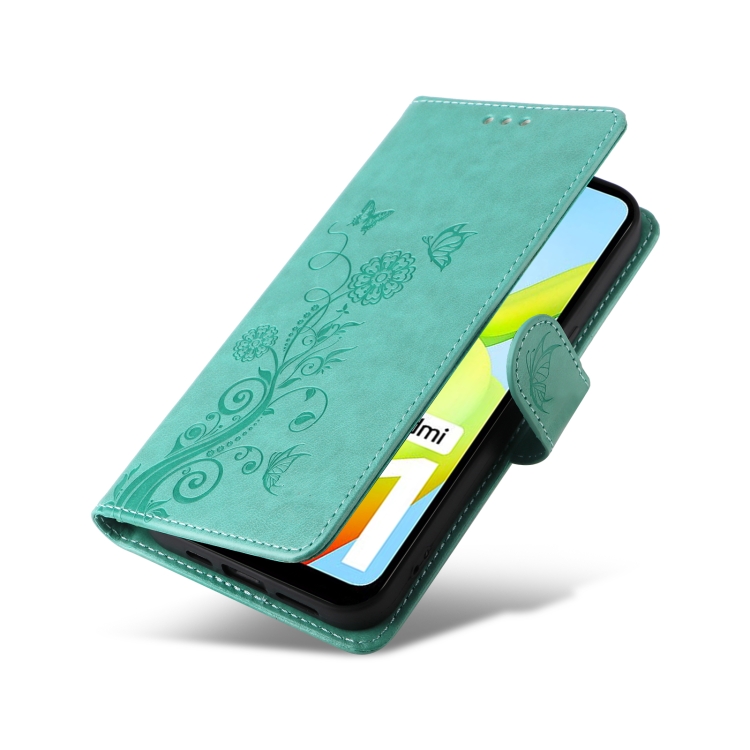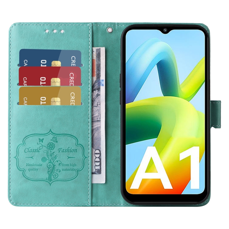 Funda de Cuero con Diseño de Mariposas y Flores En Relieve para Redmi A1 4G/A2 4G (Verde)