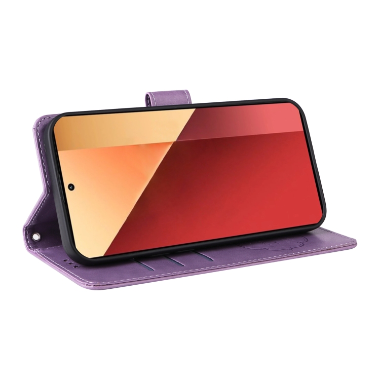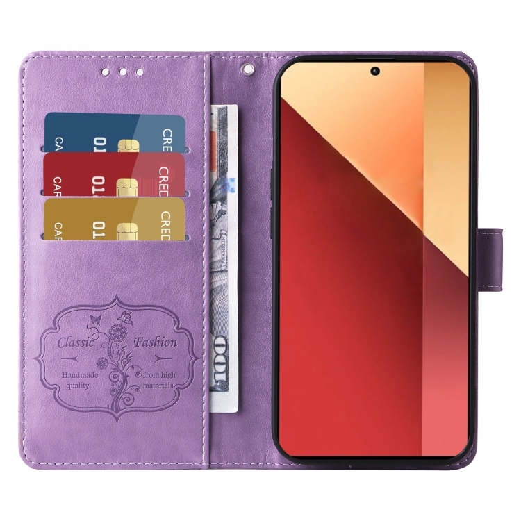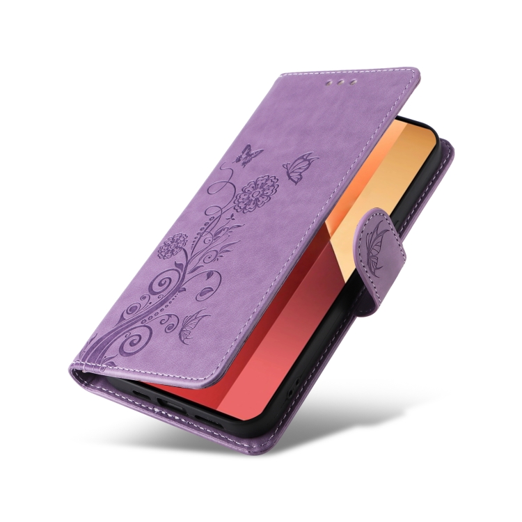 Funda de Cuero con Diseño de Mariposas y Flores En Relieve para Xiaomi Poco M6 Pro 4G (Morado)