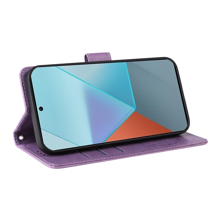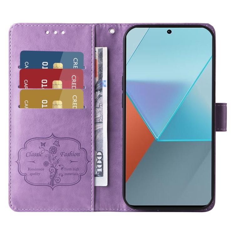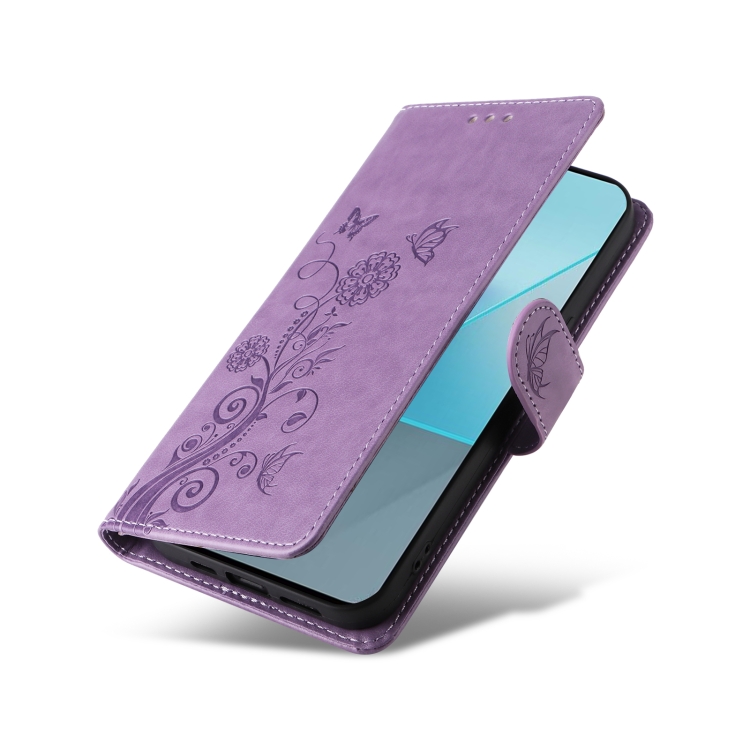 Funda de Cuero con Diseño de Mariposas y Flores En Relieve para Xiaomi Poco X6 5G (Morado)