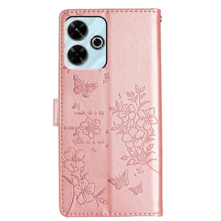Funda de Cuero con Diseño de Mariposas y Flores para Redmi 13 4G (Oro Rosa)