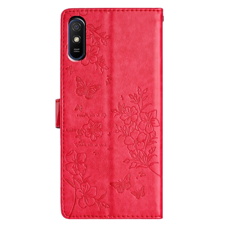 Funda de Cuero con Diseño de Mariposas y Flores para Redmi 9A (Rojo)