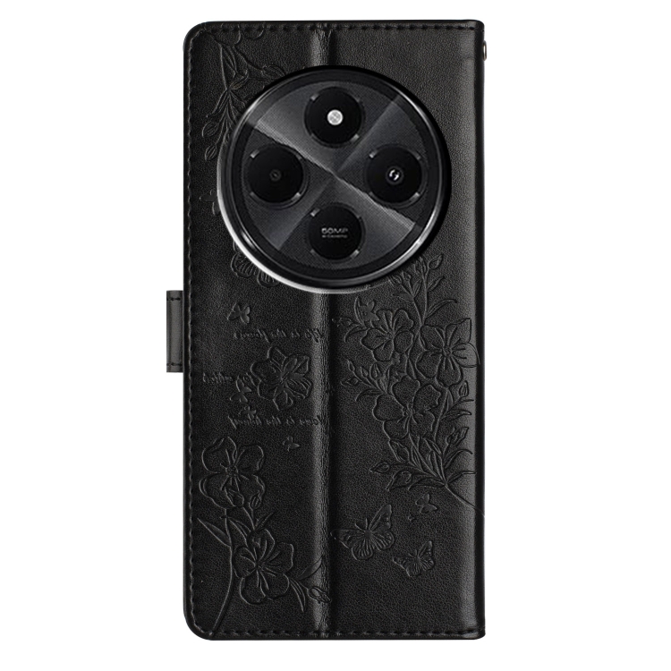 Funda de Cuero con Diseño de Mariposas y Flores para Redmi A4 5G (Negra)