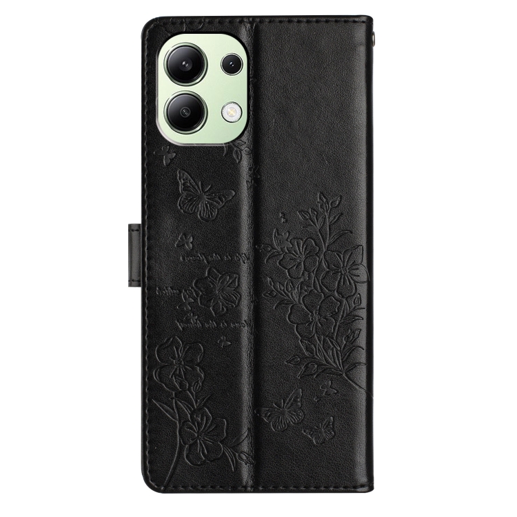 Funda de Cuero con Diseño de Mariposas y Flores para Redmi Note 13 4G (Negra)