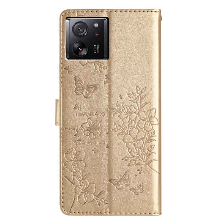 Funda de Cuero con Diseño de Mariposas y Flores para Xiaomi 13T/13T Pro (Dorada)