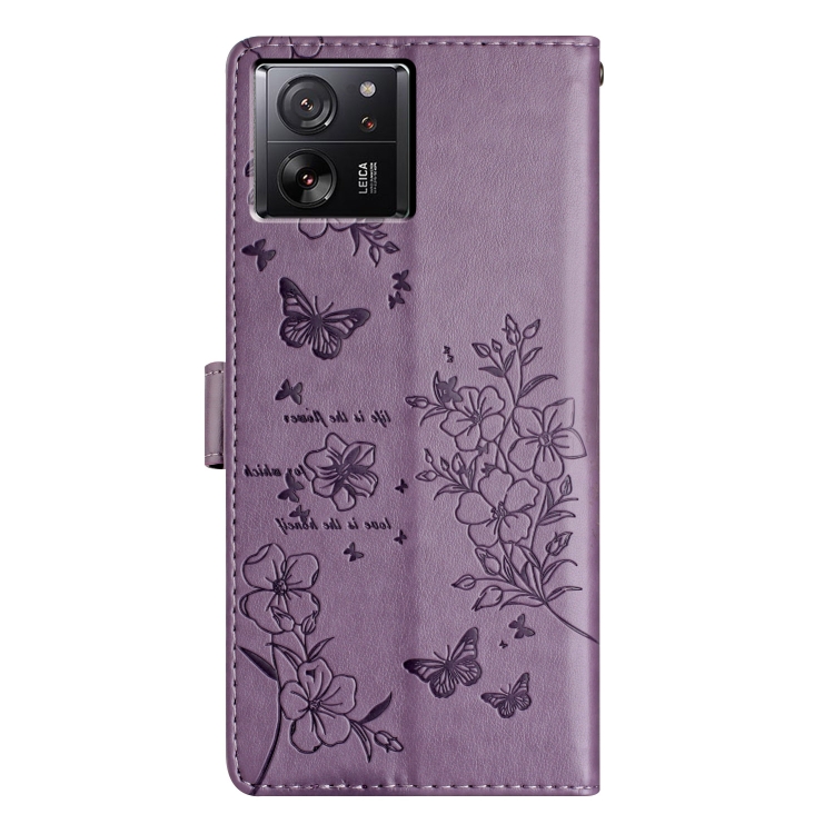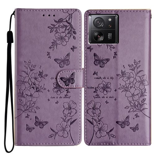 Funda de Cuero con Diseño de Mariposas y Flores para Xiaomi 13T/13T Pro (Morado)